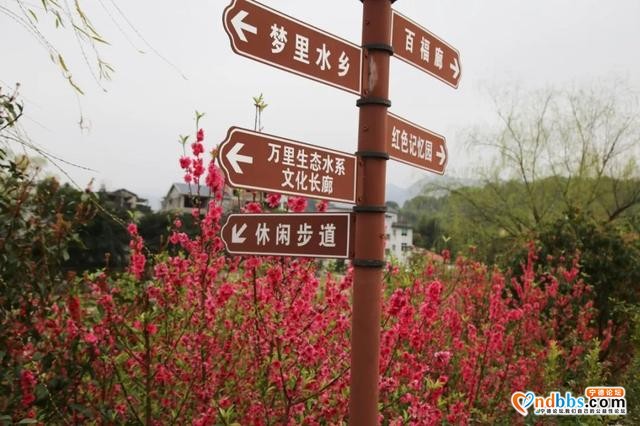 除了金灿灿的油菜花,在洋中溪畔,守候了一年的桃树也收到了春讯,在暖暖的春日里满满开了一路。